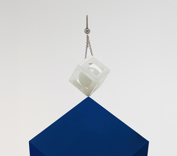 【時運天成】系列的設計核心,體現了玉世家對於翡翠珠寶的深刻思索,設計師以立體鏤空的方形框架包裹一顆飽滿圓珠,造型的本身,即含蘊「方中有圓,圓中藏靈」的寓意。「方」,具備著沉穩力量,是理性與秩序的象徵;而「圓」則代表了圓滿、靈動和感性;兩者相合,傳遞了理性與感性兼容的智慧心懷。